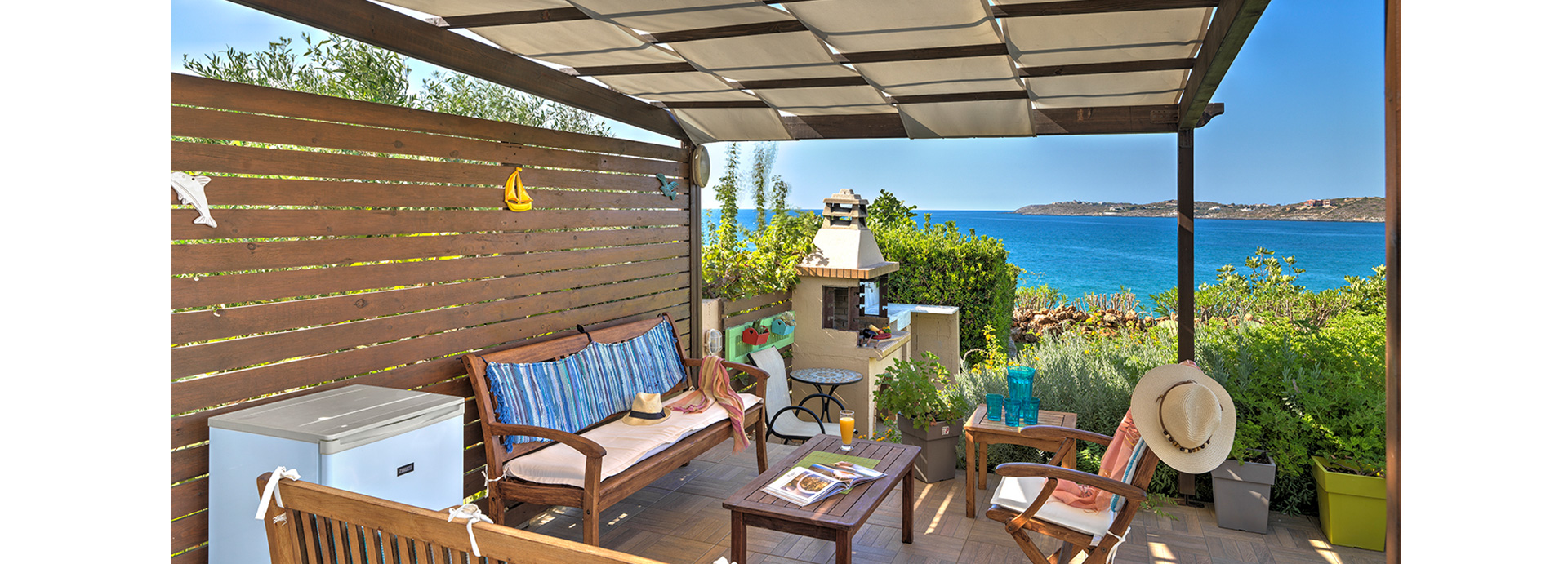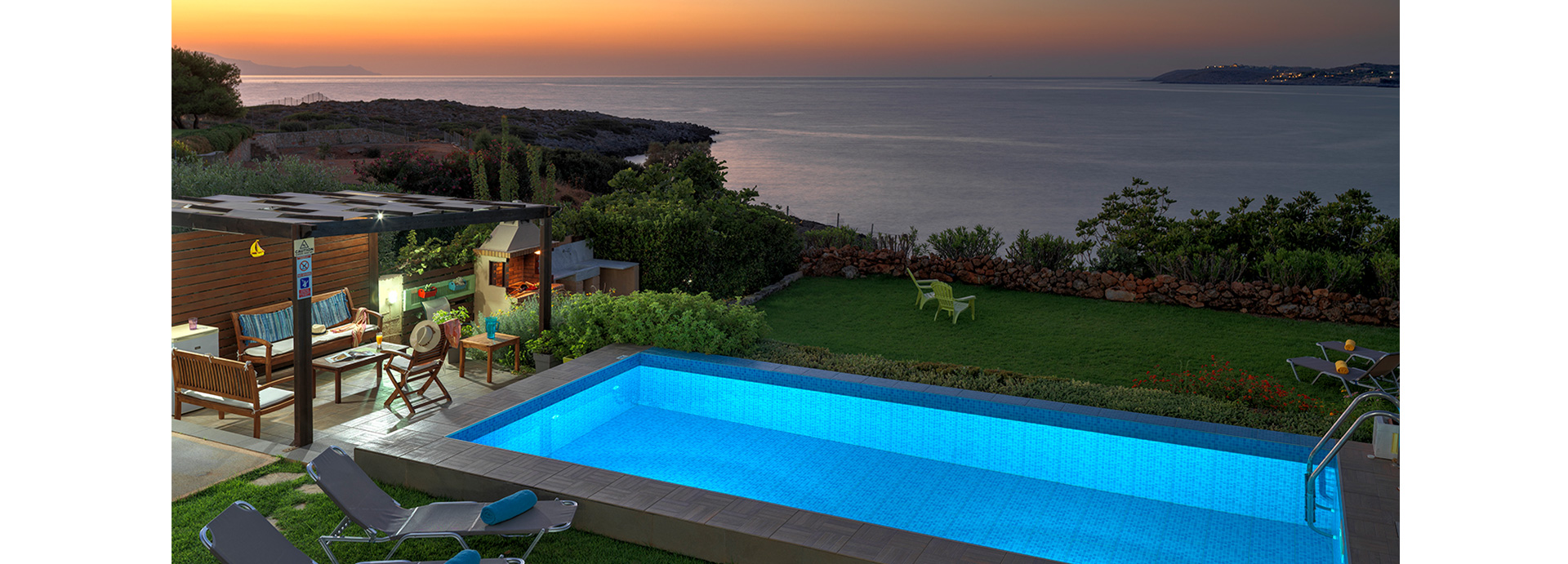 A 4 bedroom Villa with ground and first floor is fully air conditioned throughout, with free WiFi internet. Located on the Akrotiri – Peninsula, Villa Anemos offers a breathtaking sea view from inside and outside. The private pool, the well kept gardens, the outdoor areas and the inviting and cozy interior are only a few of the things that you will certainly enjoy. The beautiful patio and the barbecue facilities next to the pool will offer memorable and refreshing moments for you and your company.